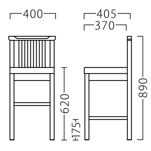 寸法:幅400mm×奥行405mm×高さ890mm×シート高:620座の奥行き:370