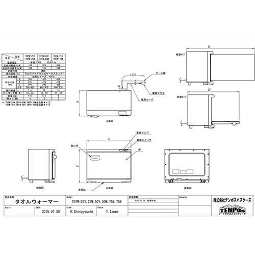 タオルウォーマー 7.5L 前開き扉 TBTW-25M W350×D275×H250mm