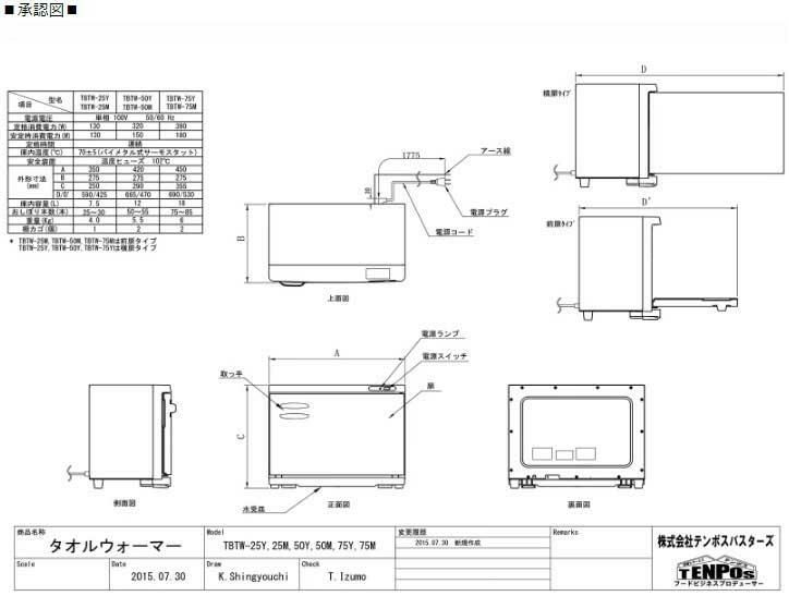 【即納可】タオルウォーマー 12L 前開き扉仕様 TBTW-50M 幅420×奥行275×高さ290mm