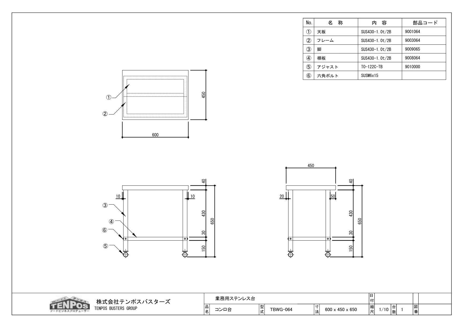 商品名:テンポスオリジナルコンロ台寸法:W600×D450×H650mm