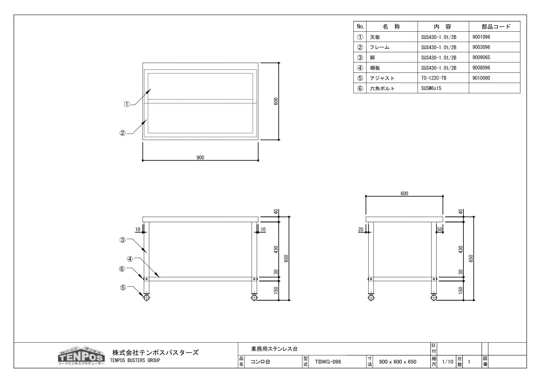 商品名:テンポスオリジナルコンロ台寸法:W900×D600×H650mm