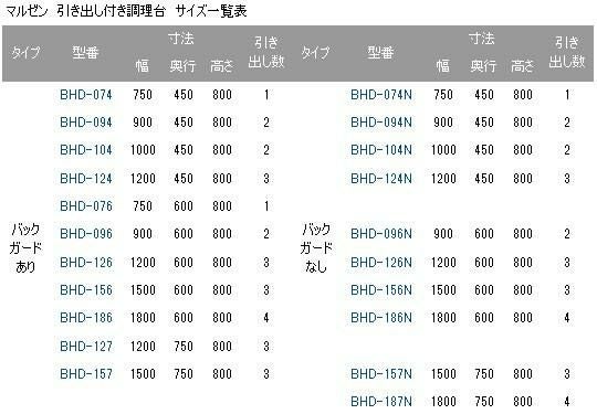BHD-126【マルゼン】調理台 引出し引戸付 幅1200×奥行600×高さ800mm