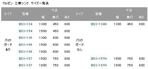 【3月末までのお届け分限定価格】【マルゼン】三槽シンク バックガードあり BS3-156 幅1500×奥行600×高さ800mm