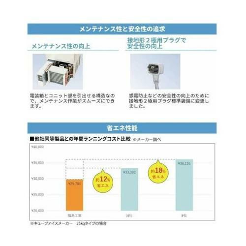 セル方式の自動製氷機です。不純物が少なく、透明度の高いキューブアイスを提供します。飲料用として、保冷用として、さまざまな用途で活躍します。