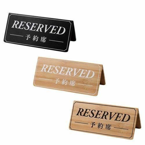 竹製予約席サインDS-5V 黒ベース・白文字