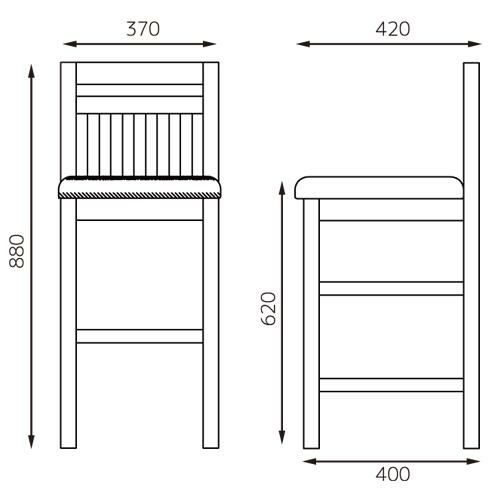 | サイズ | 幅370×奥行420×高さ880(mm) 座面高さ:620(mm) |
