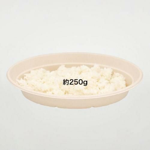 竹とバガス(サトウキビの搾りかす)の混合素材からできた、植物由来の業務用・使い捨てテイクアウトカレー容器。内面のPLAフィルム加工でお米の貼り付きを抑制。耐油耐水性があり電子レンジ対応のため、テイクアウトや店舗販売用のカレーにぴったりです。蓋は本体と同素材のものと中身が見える透明タイプの2種類。