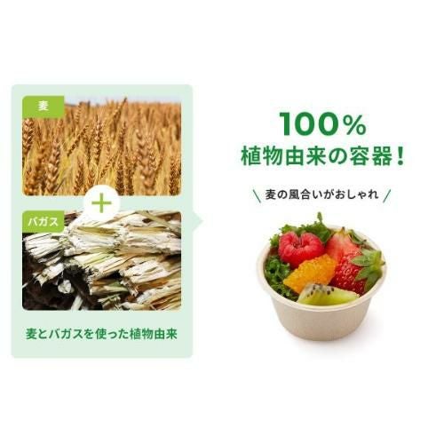 【メーカー廃盤品のため、在庫なくなり次第終売】麦の非可食部とバガス(サトウキビの搾りかす)の混合素材からできた、植物由来の業務用・使い捨て小型カップです。容器表面にラミネート加工をしているため、耐油耐水性があり、ドレッシングや味移りを防ぎたい副菜やフルーツを入れて使うことが出来ます。ランチボックスに入るサイズ感で、テイクアウトにもピッタリです。試食・試飲カップとしても使用できます。