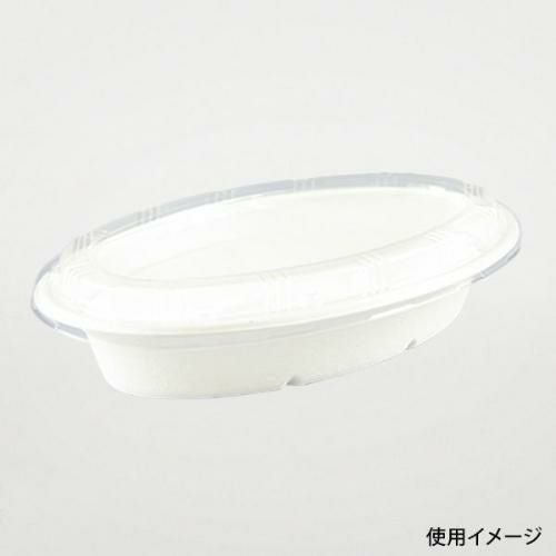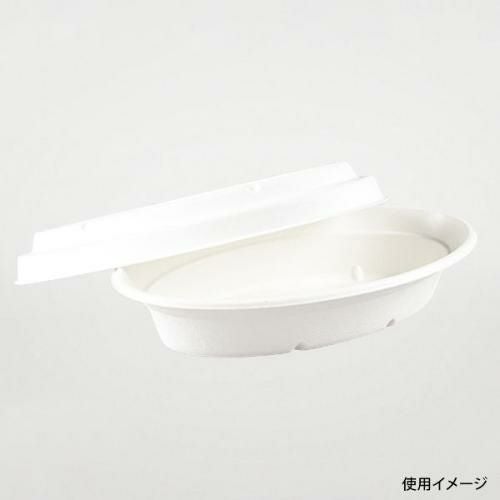 竹とバガス(サトウキビの搾りかす)の混合素材からできた、植物由来の業務用・使い捨てのテイクアウトカレー容器。清潔感あるホワイトを基調としています。内面のPLAフィルム加工でお米の貼り付きを抑制。耐油耐水性があり電子レンジ対応、テイクアウトや店舗販売用のカレーにぴったりです。蓋は本体と同素材のものと中身が見える透明タイプの2種類。容量:ごはん200g/カレー100g。