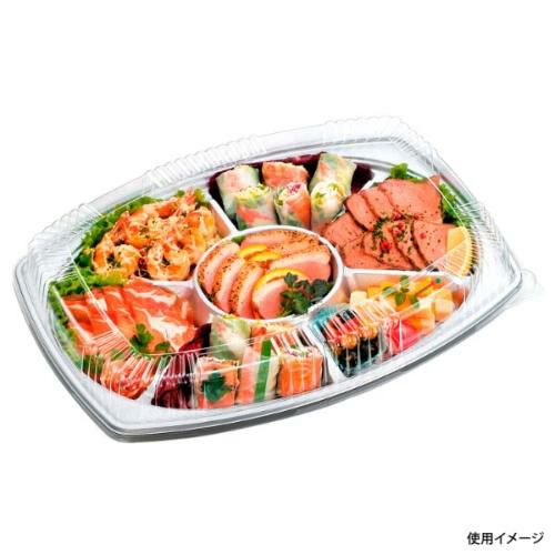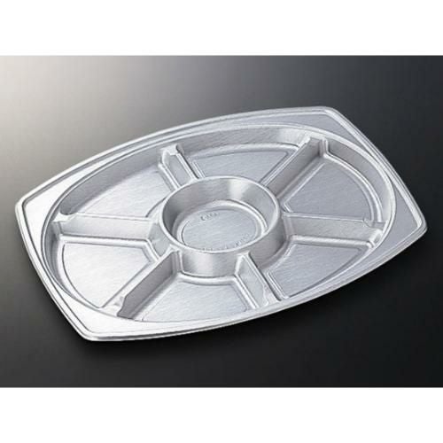 焼肉・バーベキューのセットはもちろん、オードブルなどにも適した金属光沢の美しい洋皿容器。※蓋は別売り。