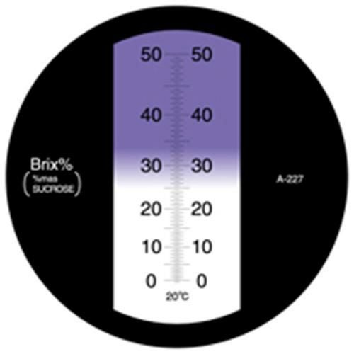 炊きたてのごはんを2,3粒乗せて目盛を覗くだけで簡単にごはんの水分をチェックできます。測定範囲はBrix0.0~50.0%(※水分%=100-Brix(%)に相当)で、加熱乾燥方式の水分計に比べて迅速に測定が出来ます。また、境界線が鮮明かどうかでごはんの糊化状態の診断も行なえます。