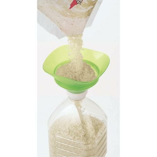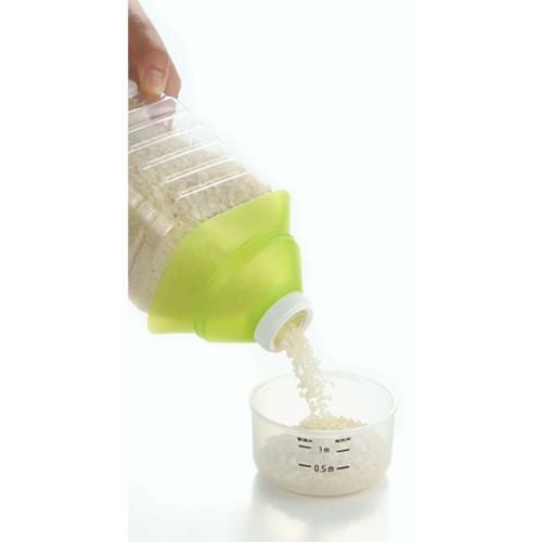 お米の計量・保存・移し替えがこれひとつ!ペットボトルを米びつとして使えます。移し替えに。計量に。冷蔵庫のドアポケットや野菜室にも入ります。