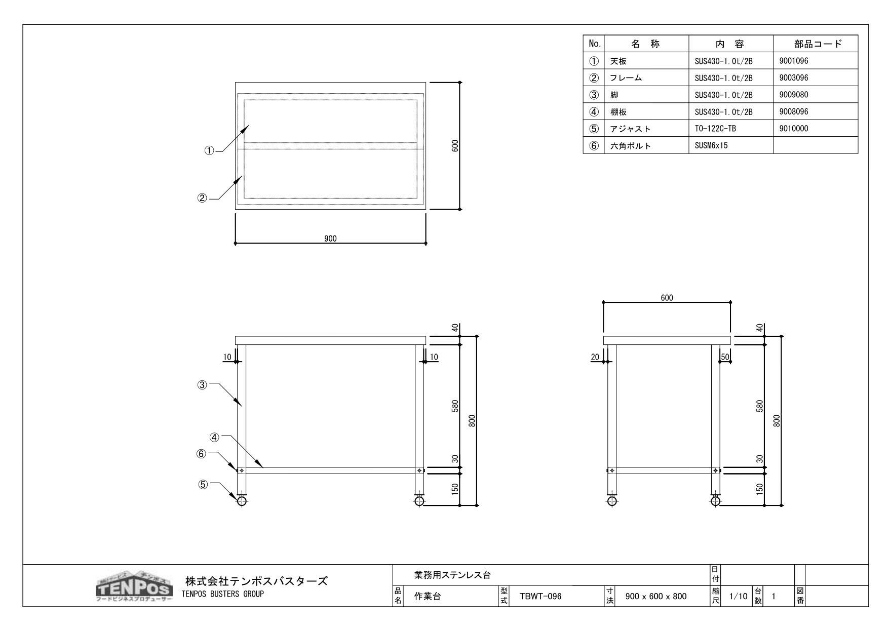 商品名:テンポスオリジナル作業台寸法:W900×D600×H800mm