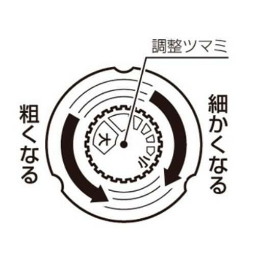 ●挽き目の調整が可能。本体ミル部のツマミを回すことで、挽き目の粗目・細目を用途に合わせて調整することができます。