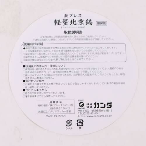 商品名:ブルーテンパー 軽量北京鍋 33cm
