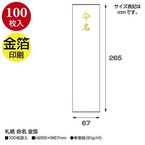 商品名:札紙 命名 金箔 浮出(加工無し)/100枚×5冊入