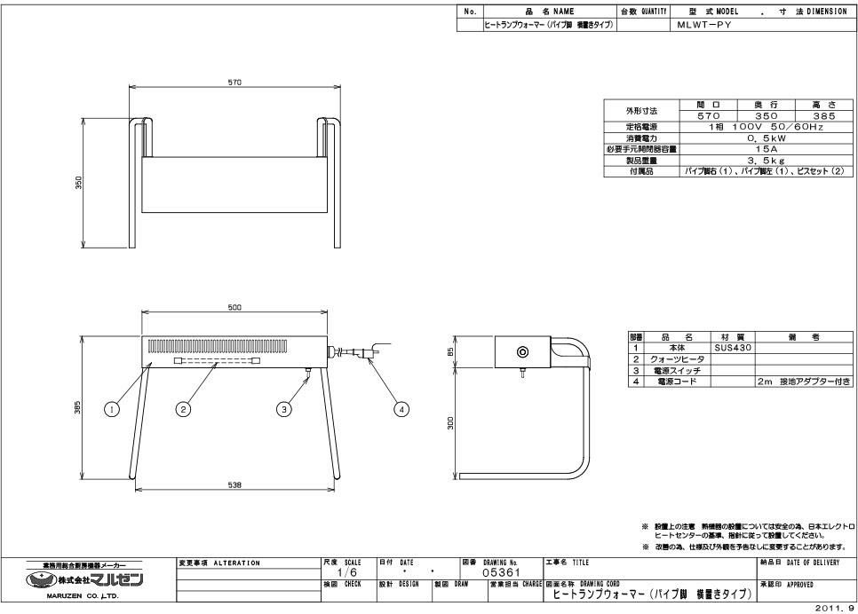 【マルゼン】ヒートランプウォーマー MLWT-PY 幅570×奥行350×高さ385mm