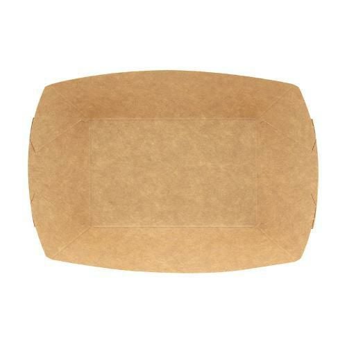 クラフト紙にPEコーティングしたシンプルな紙製トレー容器。