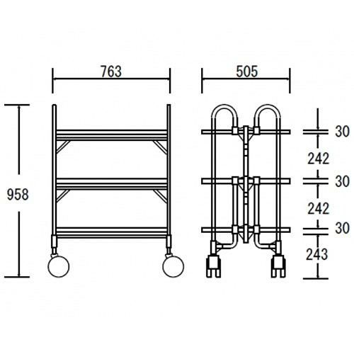 ニッセイ 折りたたみ式ステンレスワゴン【3段】KEAM-3(耐荷重30kg/段)幅763×奥行505×高さ958mm/1台に付き送料2,200円