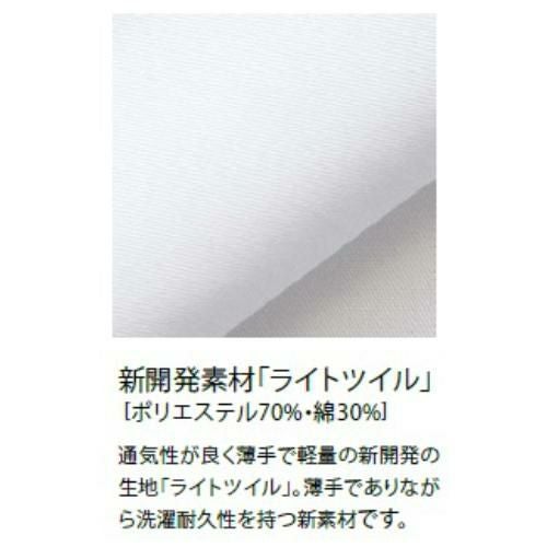 新開発素材「ライトツイル」(ポリエステル70%・綿30%)・・・通気性が良く薄手で軽量の新開発の生地「ライトツイル」。薄手でありながら洗濯耐久性を持つ新素材です。