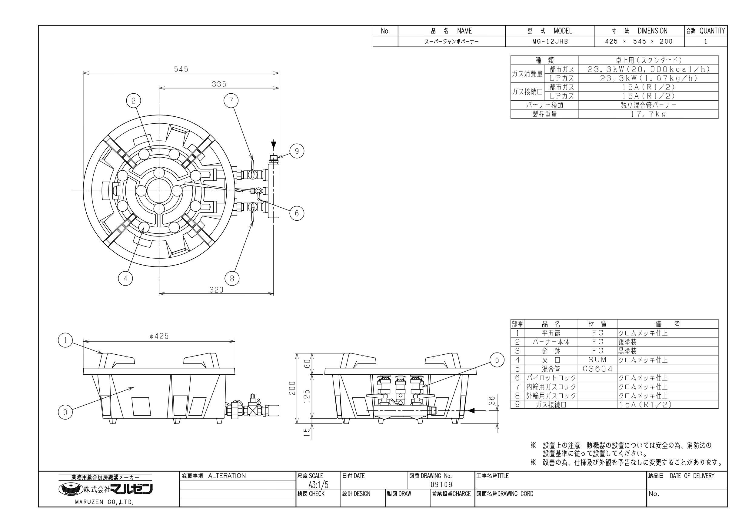 ガス消費量:(都市ガス)23.3kW(20,000kcal/h)、(LPガス)23.3kW(1.67kg/h)