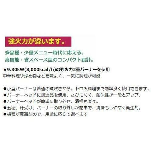 9.30kW(8,000kcal/h)の強火力2重バーナーを使用