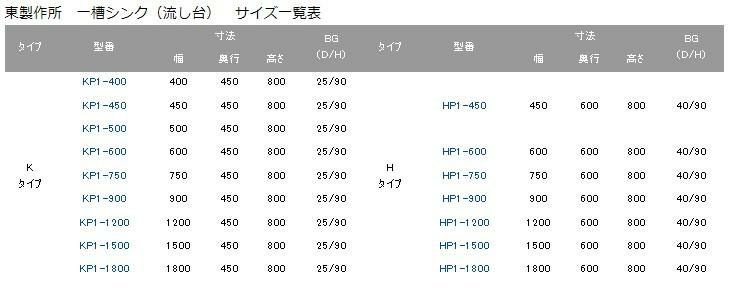 【東製作所】【組立式】KP1-500,KPC1-500 一槽シンク 幅500×奥行450×高さ800mm