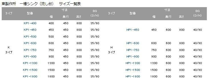 【東製作所】【組立式】KP1-1500,KPC1-1500 一槽シンク 幅1500×奥行450×高さ800mm