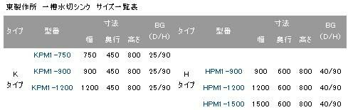 【東製作所】【組立式】HPM1-1200,HPMC1-1200 一槽水切シンク 幅1200×奥行600×高さ800mm