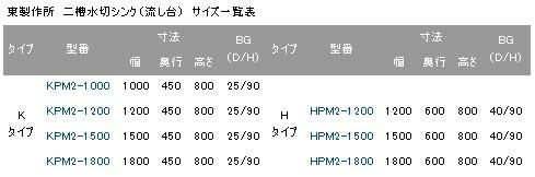 【東製作所】【組立式】二槽水切シンク KPM2-1200,KPMC2-1200 幅1200×奥行450×高さ800mm