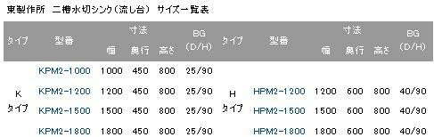 【東製作所】【組立式】二槽水切シンク HPM2-1500,HPMC2-1500 幅1500×奥行600×高さ800mm