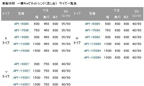 【東製作所】AP1-600H一槽キャビネットシンク 幅600×奥行600×高さ800mm