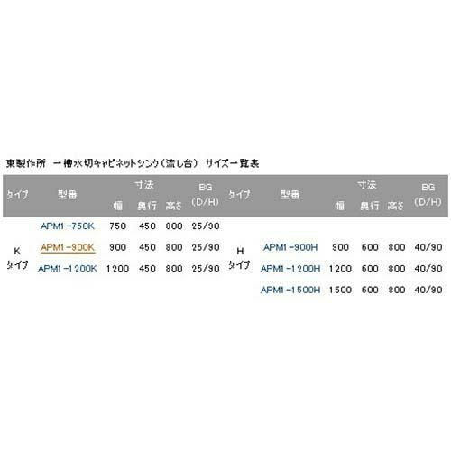 【東製作所】APM1-900H一槽水切キャビネットシンク 幅900×奥行600×高さ800mm