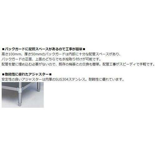 高さ100mm、厚さ50mmのバックガードは内部に十分な配管スペースがあり、