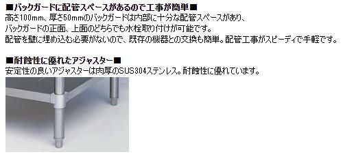高さ100mm、厚さ50mmのバックガードは内部に十分な配管スペースがあり、