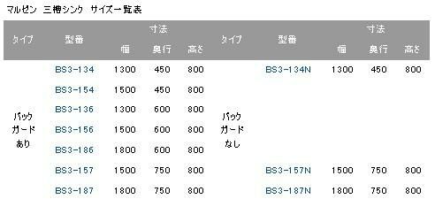 【3月末までのお届け分限定価格】【マルゼン】三槽シンク BS3-134, BS3-134N 幅1300×奥行450×高さ800mm