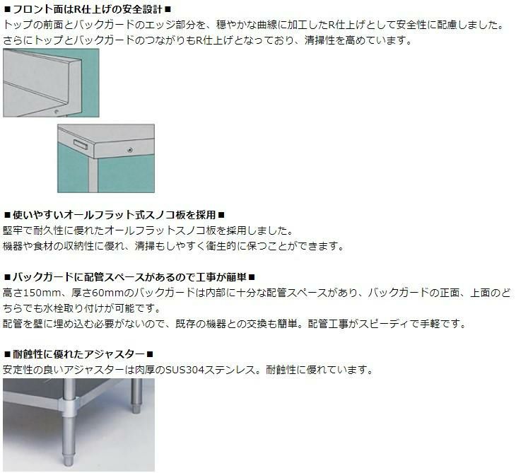 トップの前面とバックガードのエッジ部分を、穏やかな曲線に加工したR仕上げとして安全性に配慮しました。