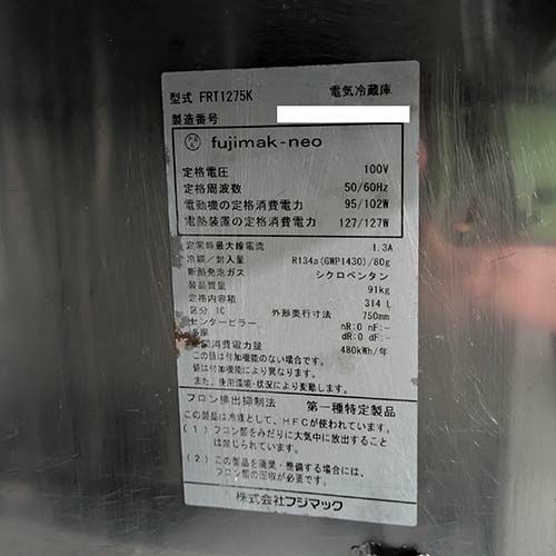 【業界最長1年保証】冷蔵コールドテーブル フジマック FRT1275K 幅1200×奥行750×高さ800