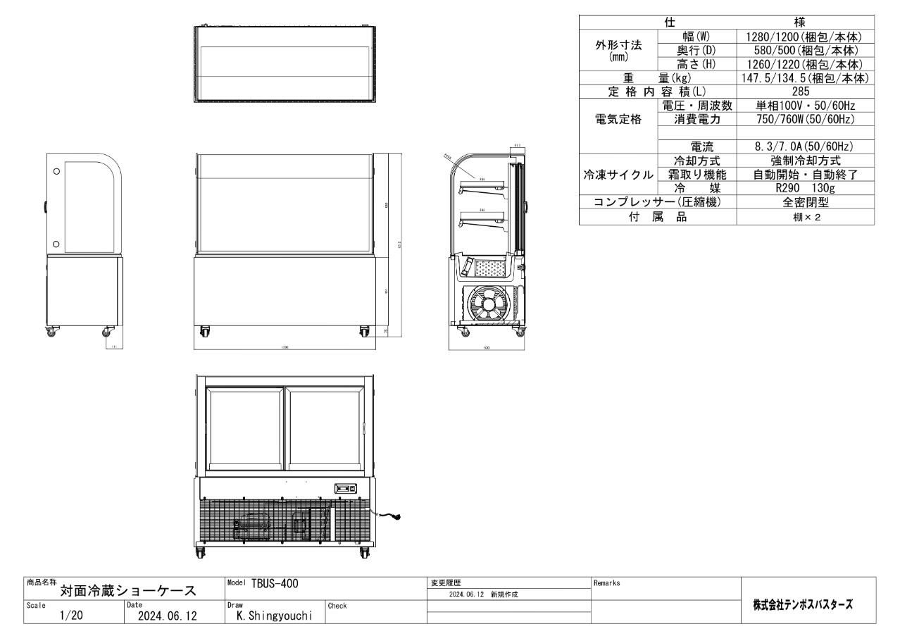 商品名:TB対面冷蔵ショーケース 薄型 ブラック