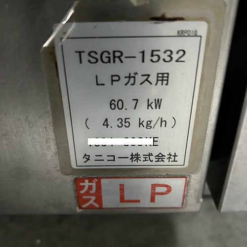 ガスレンジ タニコー TSGR-1532 幅1500×奥行600×高さ800 LPG(プロパンガス)