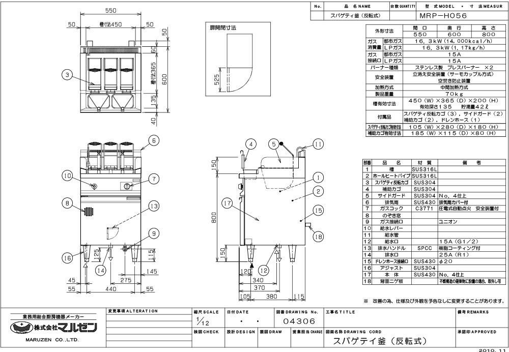 【マルゼン】スパゲティ釜 反転式 MRP-H056 幅550×奥行600×高さ800mm