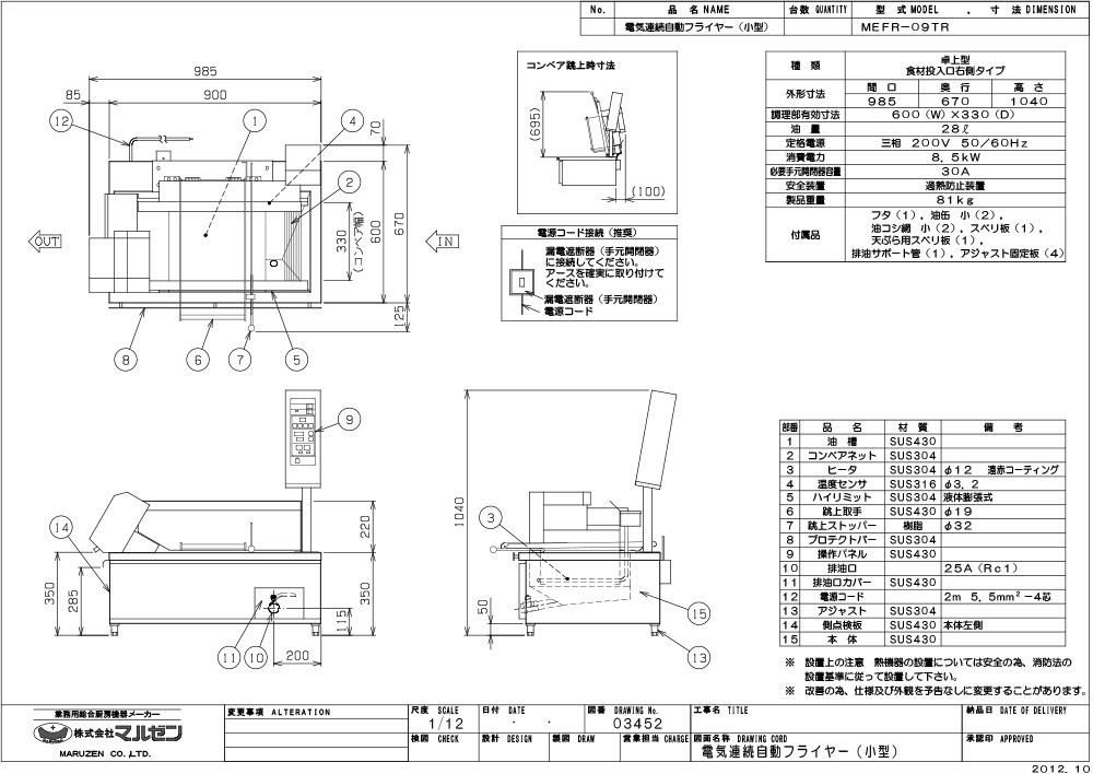 【マルゼン】MEFR-09TR(L) 卓上型 電気連続自動フライヤー 28リットル 小型 幅985×奥行670×高さ350(1040 操作部含む)