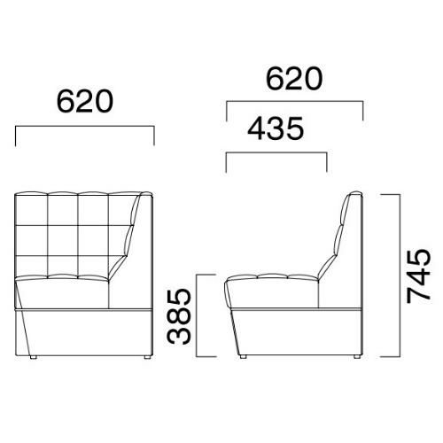 業務用椅子 CRES(クレス) 角コーナーソファー クレマンU 幅620×奥行620×高さ745 シート高385