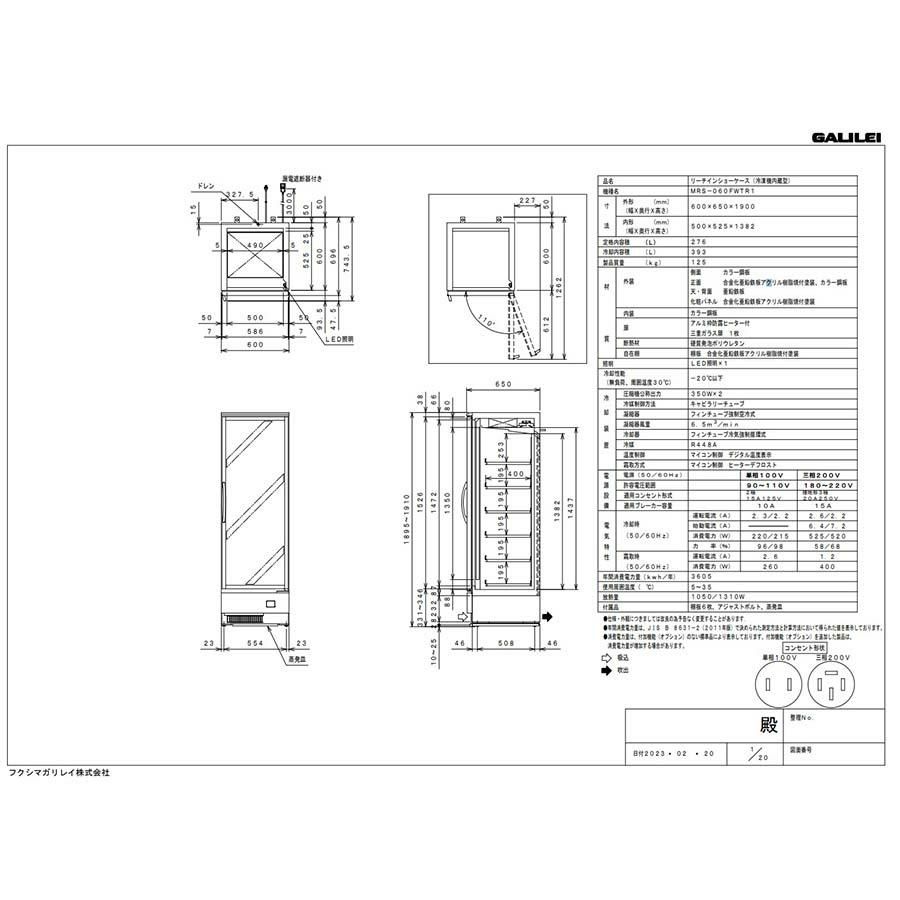 メーカー:フクシマガリレイ(旧福島工業) 型式:MRS-060FWTR