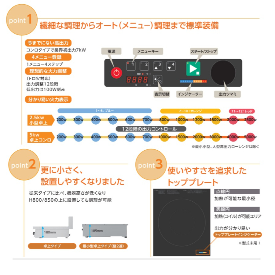 推奨鍋:SGマーク取得の平らな業務用鍋。鍋底の直径が120~240mm。