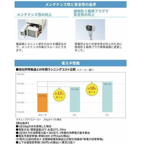 セル方式の自動製氷機です。不純物が少なく、透明度の高いキューブアイスを提供します。