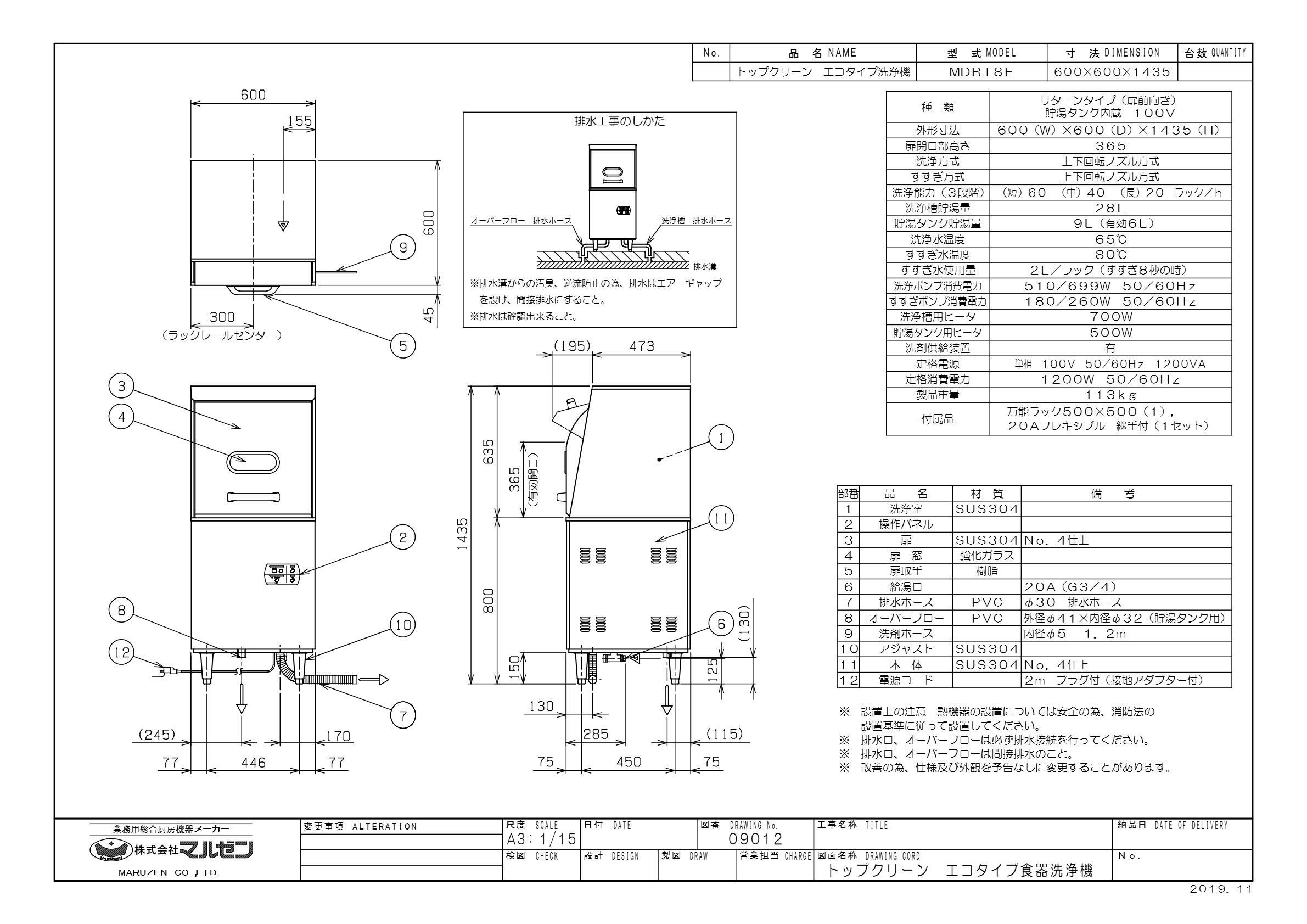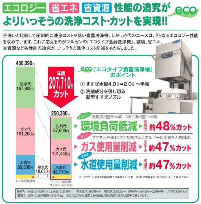 MDRT8E 【マルゼン】食器洗浄機 エコタイプ 前開き 幅600×奥行600×高さ1435 1P100V