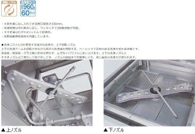 ●洗浄能力(3段階):(短)60(中)40(長)20ラック/h