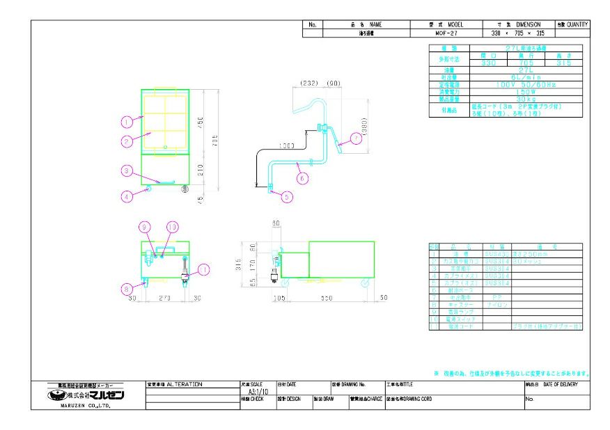 MOF-27 【マルゼン】 油ろ過機 幅330×奥行705×高さ0