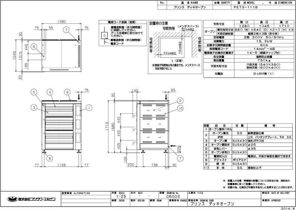 【マルゼン】デッキオーブン プリンス PET3-111B 幅1280×奥行1045×高さ1710 三相200V